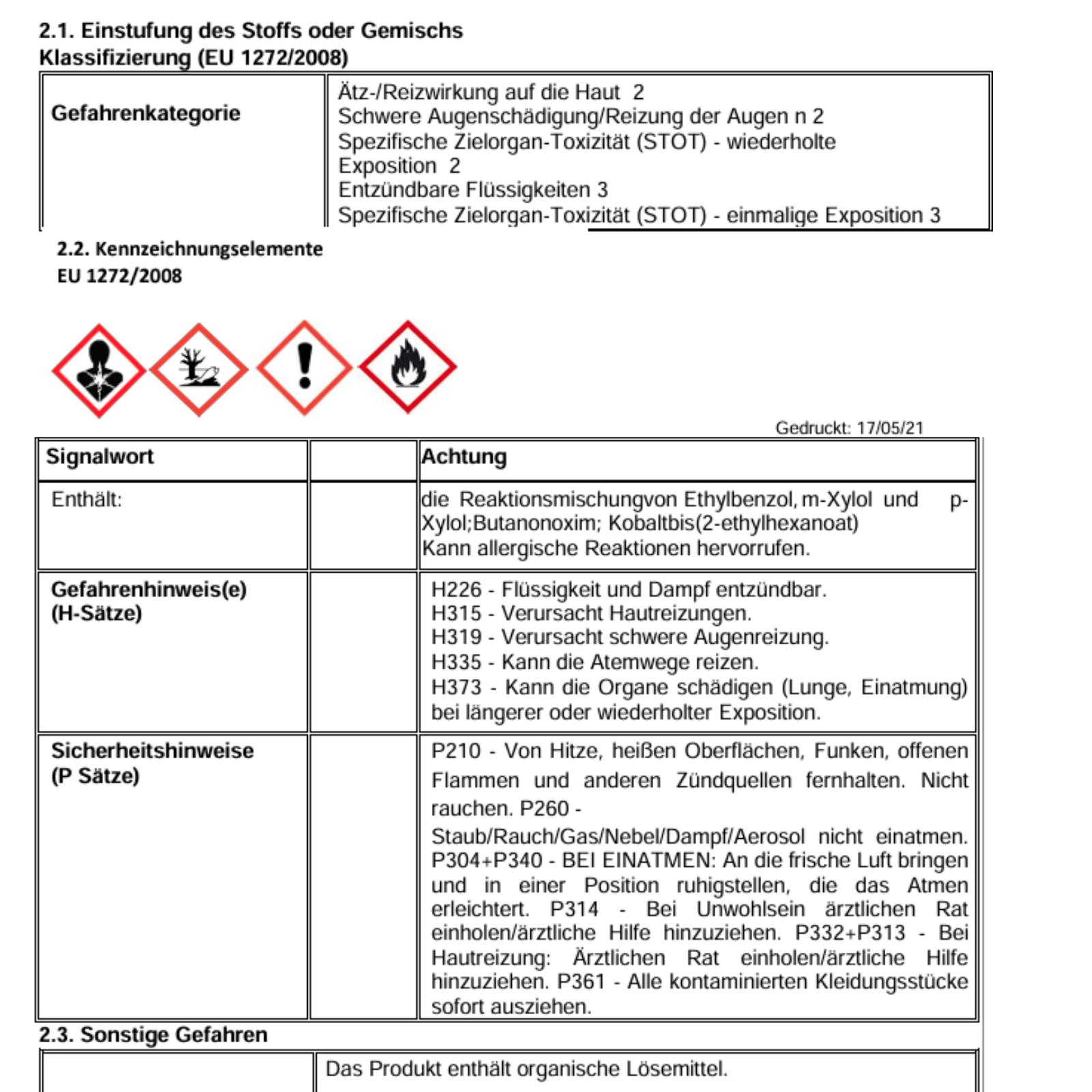 EU-Grenzwert für den VOC- Höchstgehalt:410 g/l