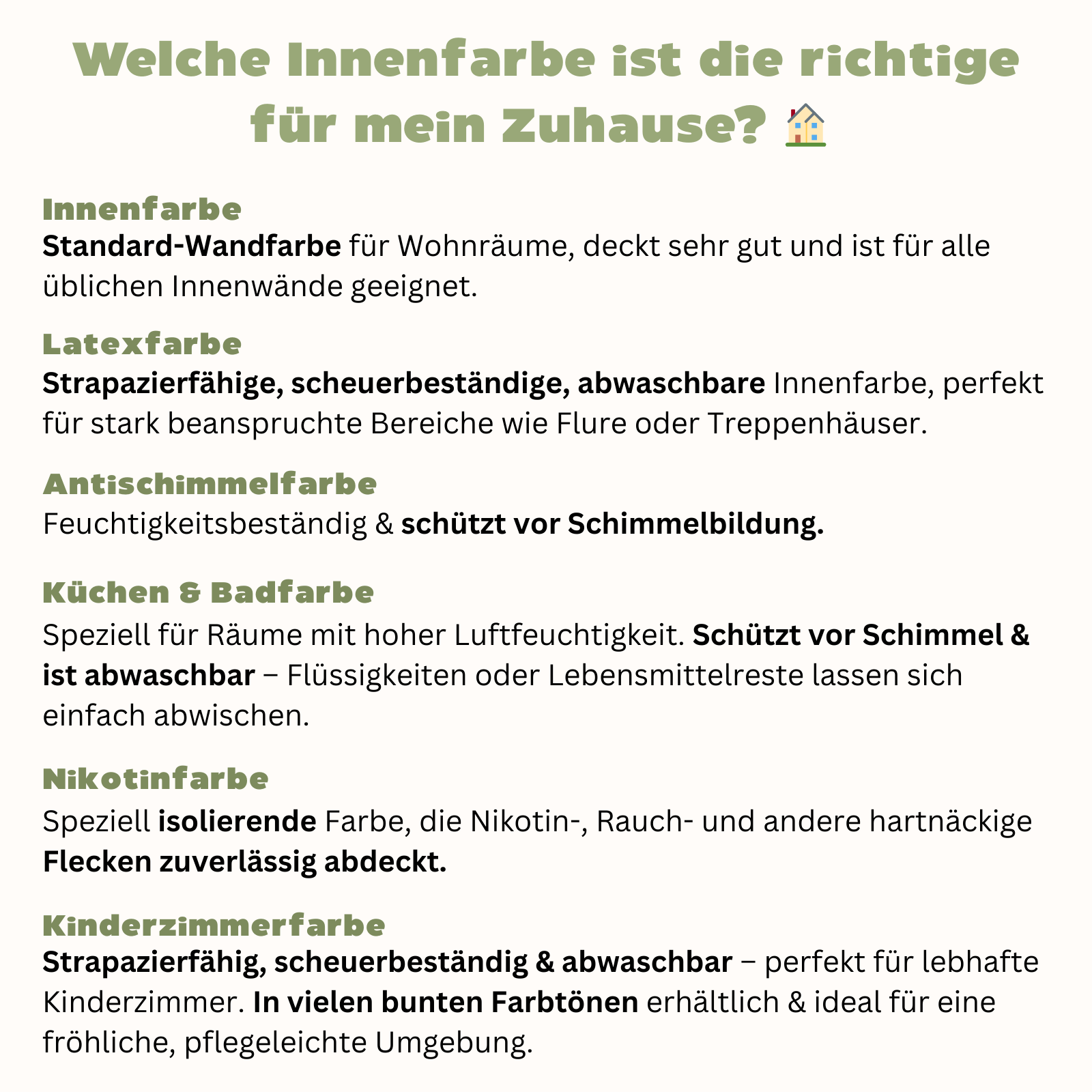 Diese Nikotinfarbe ist dein verlässlicher Partner für strahlend saubere Wände – ganz gleich, ob du Nikotin-, Ruß- oder Wasserflecken entfernen möchtest.