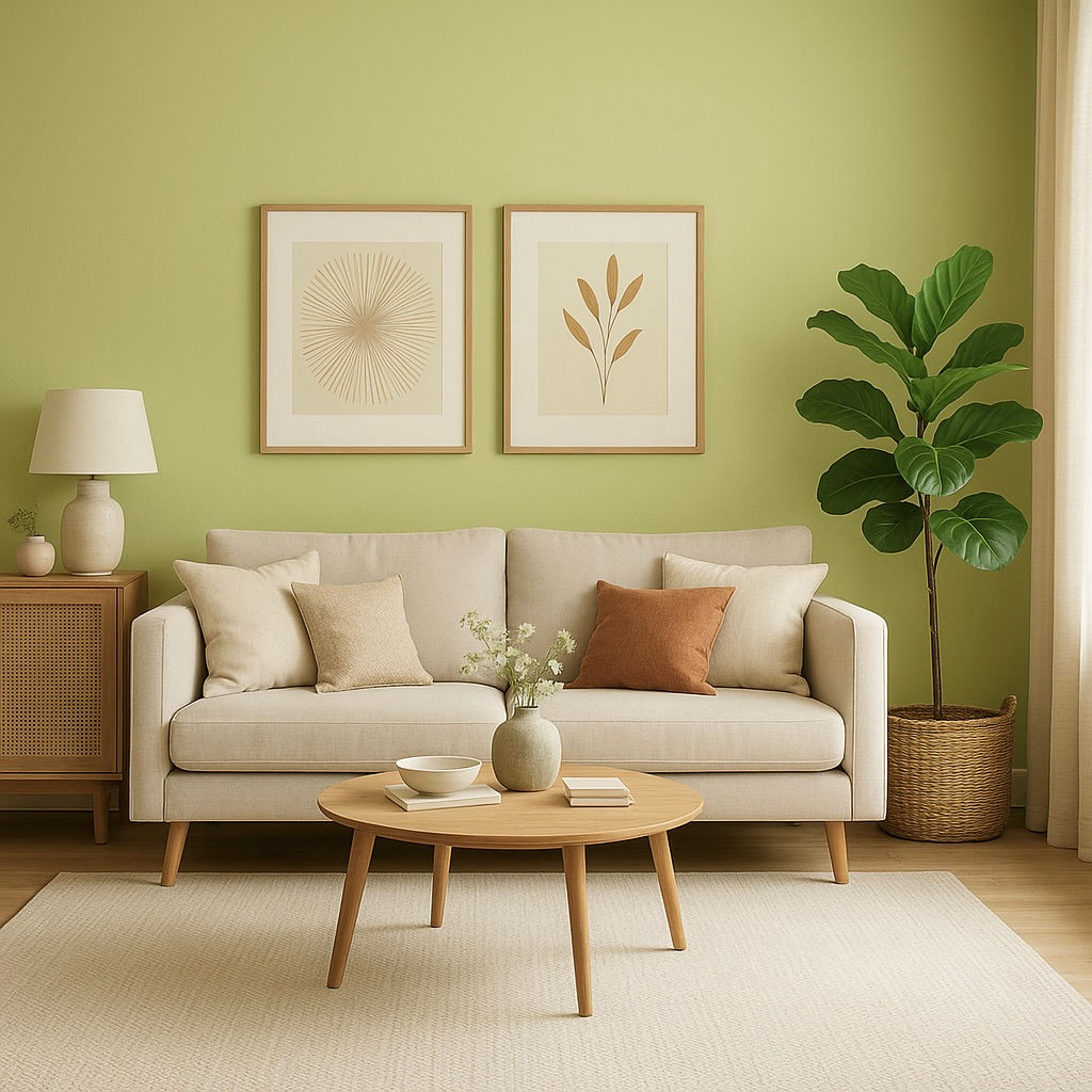 Ein sanftes Grün-Gelb, das sofort Wärme und Natürlichkeit in den Raum bringt. Der Farbton erinnert an frische Frühlingstage und passt ideal zu Holz, Beige- und Cremetönen. Perfekt für ein freundliches Wohnzimmer, Küchenakzente oder moderne Natur-Looks.