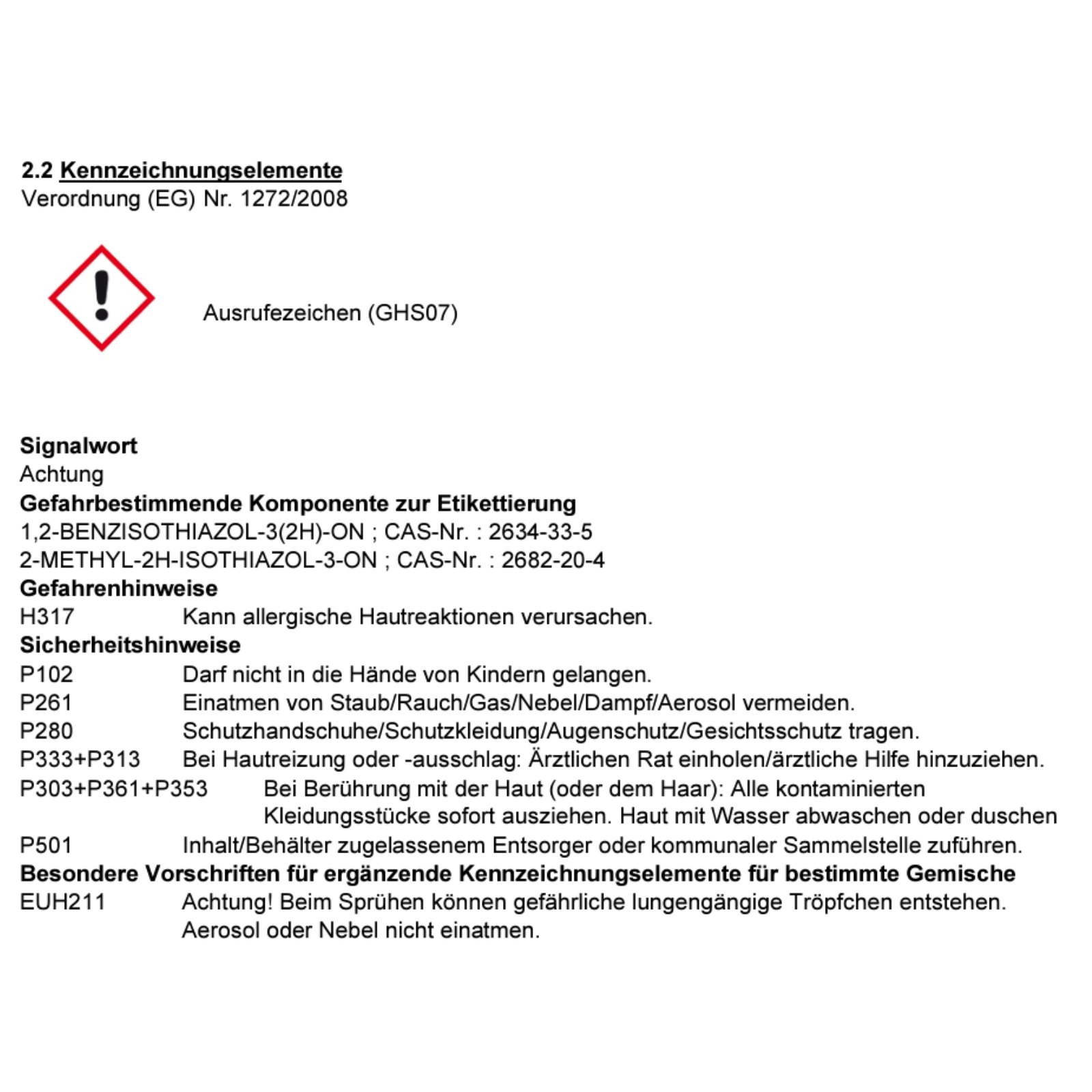 - Sicherheit: Aerosole beim Sprühen nicht einatmen, kann Hautreaktionen verursachen