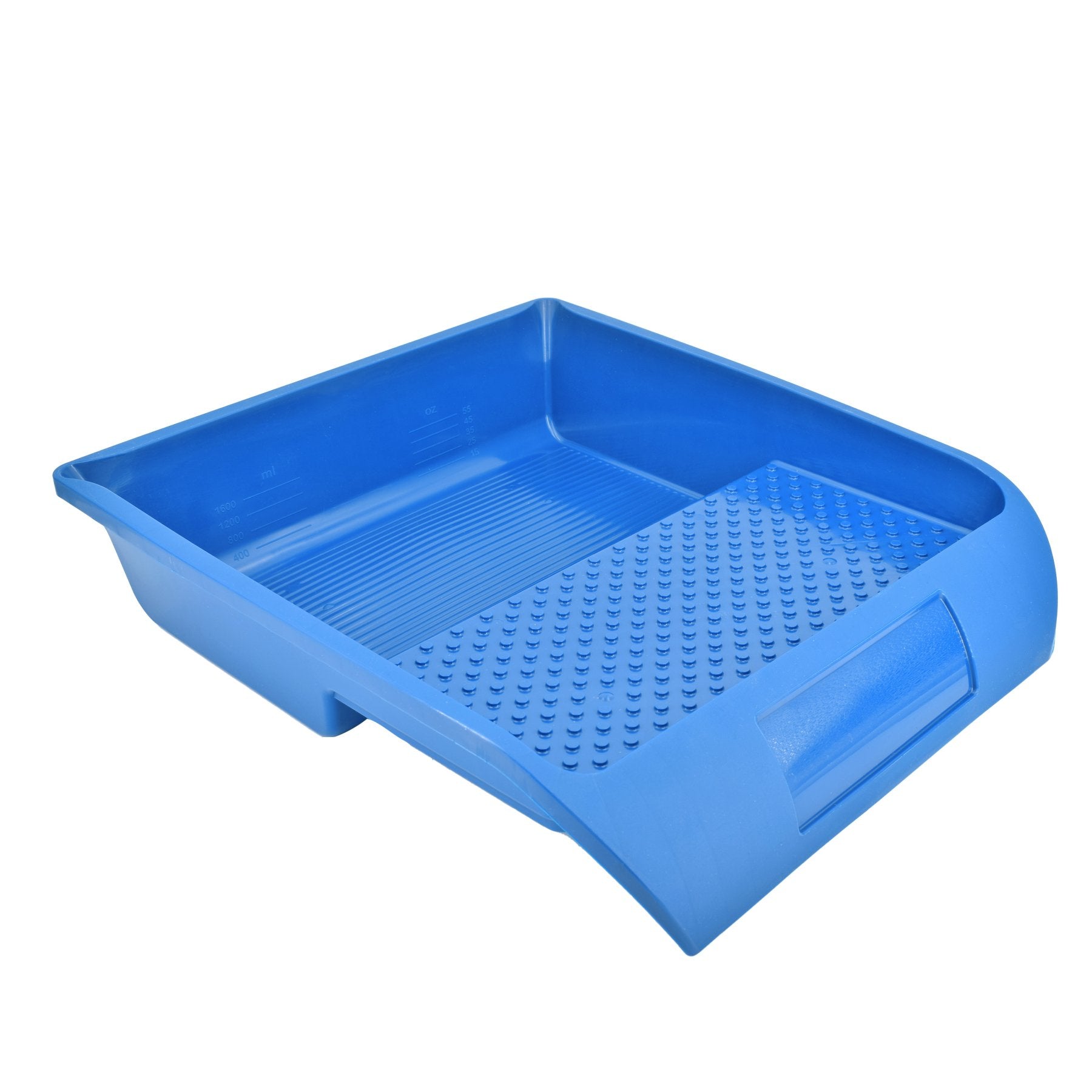 Die Farbwanne aus Kunststoff ist besonders verwindungssteif und bietet somit eine hohe Standfestigkeit. Kein Durchrutschen der Walze aufgrund der Rippenstruktur im Farbreservoir. Das Noppenprofil auf der Abrollfläche sorgt für eine gleichmäßige Verteilung der Farbe. Die integrierter Maß-Skala und Ausgießtülle ermöglichen schnelles Arbeiten.